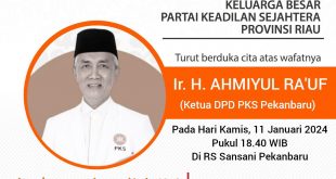 Pekanbaru – Innalillahi wa innailaihi rooji’uun. Kota Pekanbaru dan khususnya keluarga besar Partai Keadilan Sejahtera (PKS), tetiba mendapatkan kabar duka yang cukup mengejutkan, Ketua Dewan Pimpinan Daerah (DPD) PKS Pekanbaru …