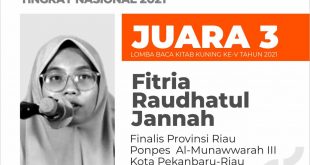 Selengkapnya »Pekanbaru — “Alhamdulillah, Alhamdulilah, Alhamdulillah” kata tersebutlah yang keluar dari lisan peserta Lomba Baca Kitab Kuning (LBKK) utusan Provinsi Riau Fitria Raudhatul Jannah, saat mengetahui dirinya meraih juara 3 pada …